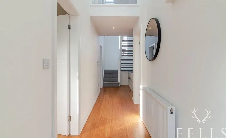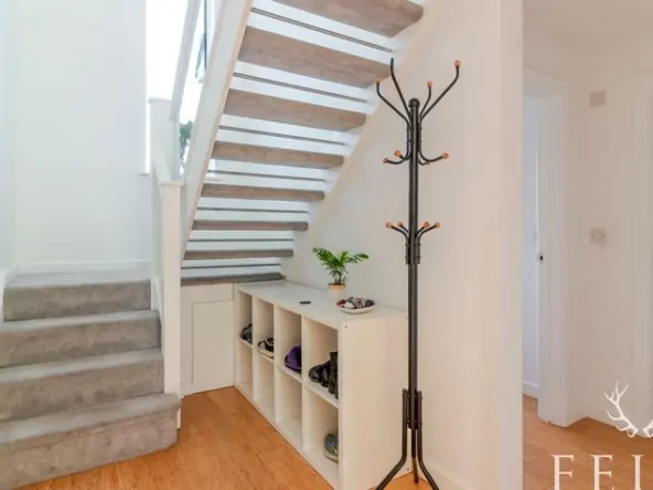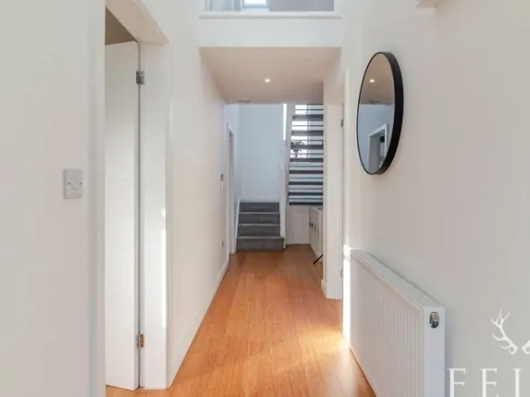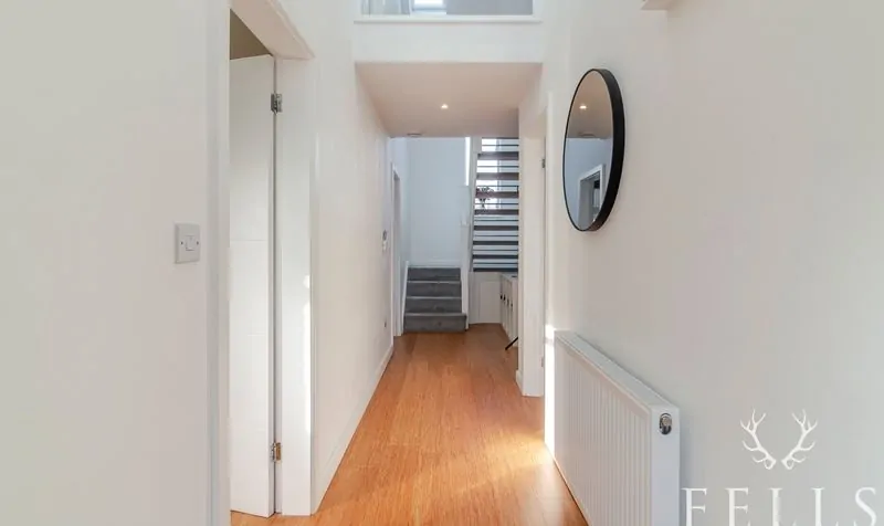 Set behind smart railings and gates, this beautifully modernised home immediately impresses with its balance of contemporary design and everyday practicality. The entrance hall creates a striking first impression, rising to a vaulted ceiling open to the first floor and flooding the space with light. Bamboo flooring flows seamlessly across the ground floor, giving a calm, cohesive feel throughout.