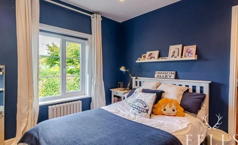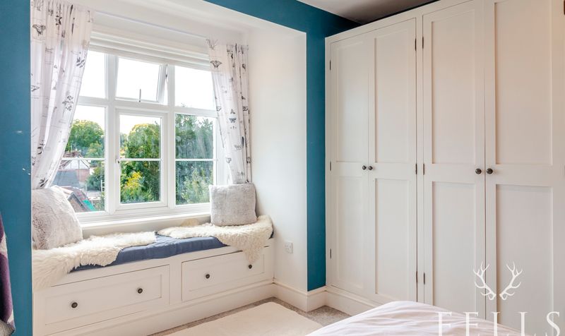 A peaceful master double with fitted wardrobes, original feature fireplace and a charming window seat overlooking the garden.