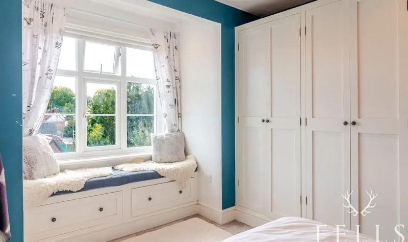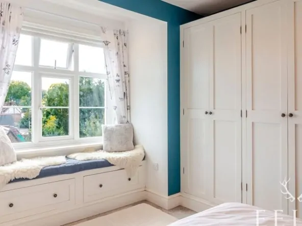 Spacious double bedroom with modern fitted wardrobes, ideal as a second bedroom or guest room.