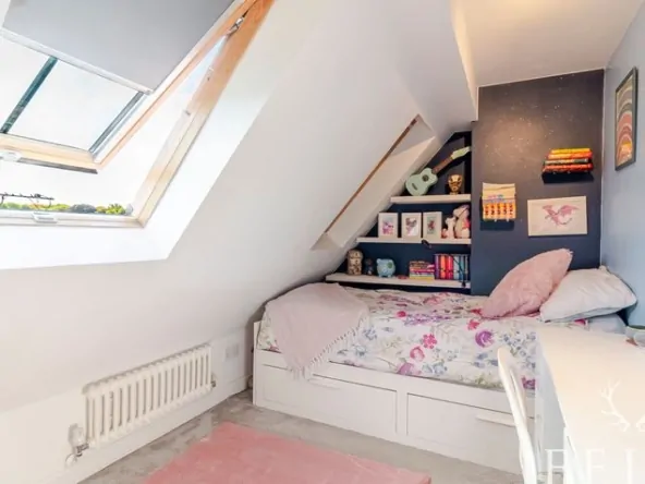 Additional single bedroom with Velux window, offering flexibility as a nursery, study, or guest room, with superb countryside views.