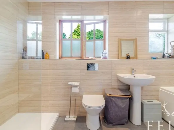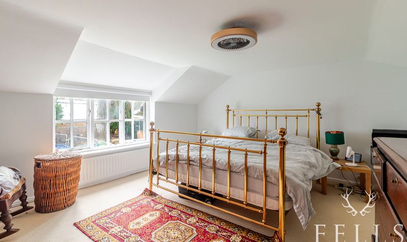 Upstairs are three further double bedrooms, each well-proportioned with a variety of aspects, and a cloakroom set just off the landing. Throughout the home, details such as sash windows and generous storage highlight its character and practicality.