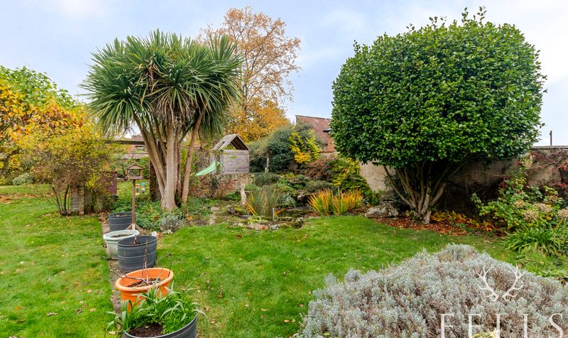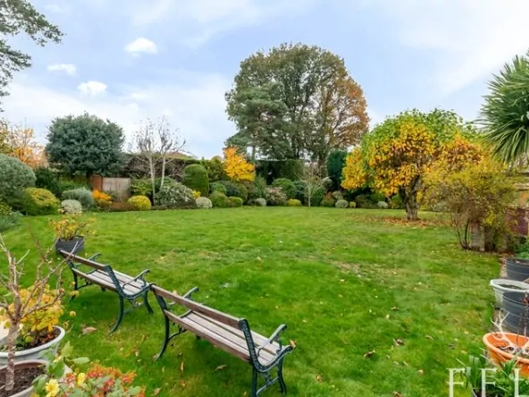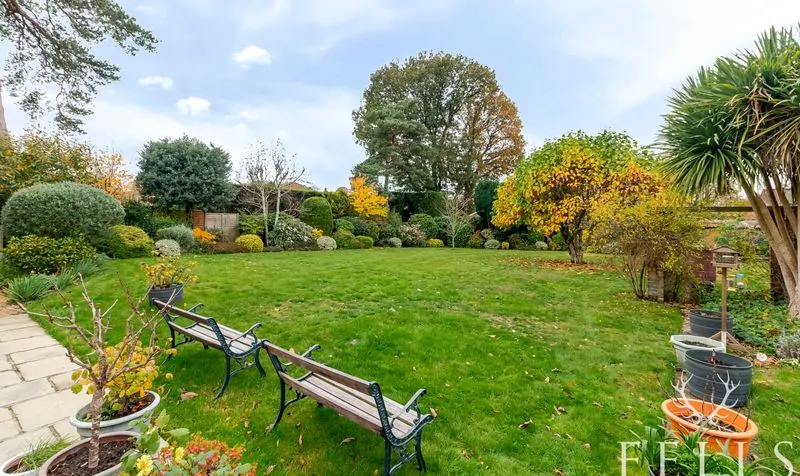 Outside, the rear garden is a real highlight, designed with family living in mind. From the patio, which catches the evening sun, making it ideal for al-fresco dinners, a generous lawn stretches out, bordered by mature herbaceous beds and perennial shrubs that bring colour through the seasons. There’s a children’s play area, a large shed discreetly tucked behind hedging, a log store, and a greenhouse that enjoys sun all day. Fully fenced and private, this large, west facing garden offers both beauty and practicality — the perfect setting for play, entertaining, and relaxation.