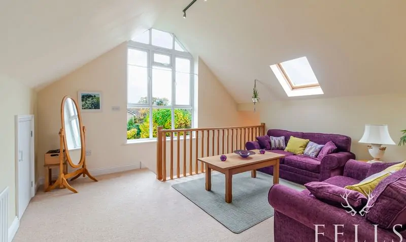 Located at the front of the house, this inviting space features dual-aspect windows and a log-burning stove, creating a bright yet cosy retreat for relaxing with family or unwinding in the evenings.