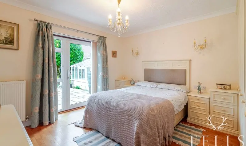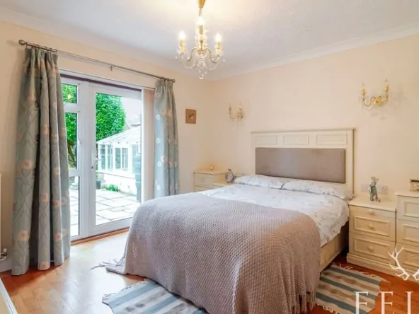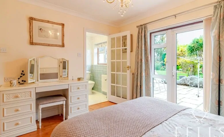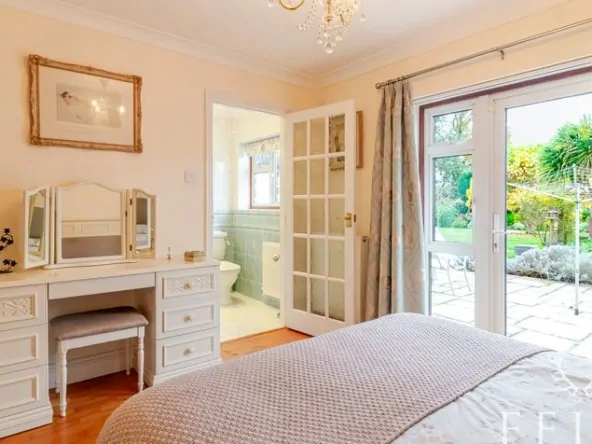 A bright and welcoming room with direct access to the garden, built-in wardrobes, and the convenience of a private en-suite shower room — perfect as a guest suite or teenager’s bedroom.