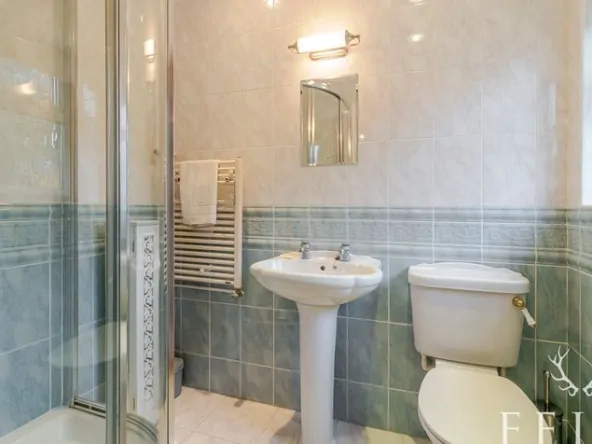 A well-proportioned shower room featuring a shower enclosure, WC, and wash basin — designed for comfort and practicality.