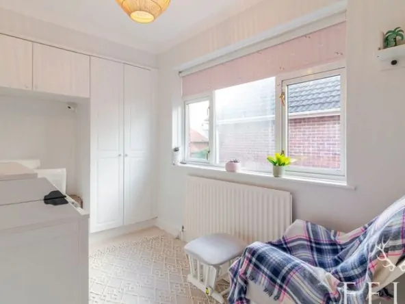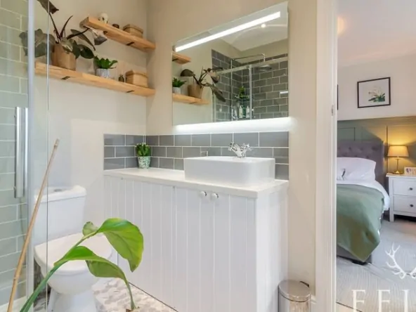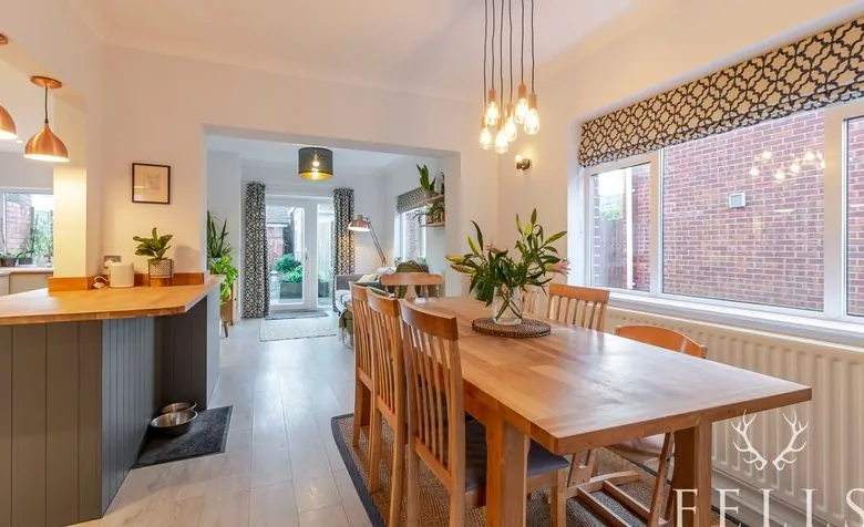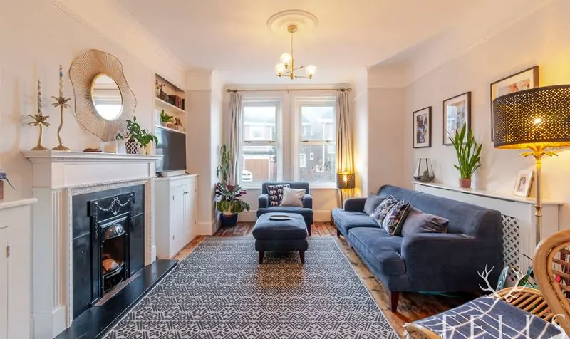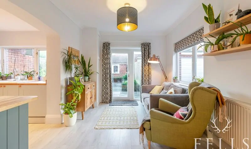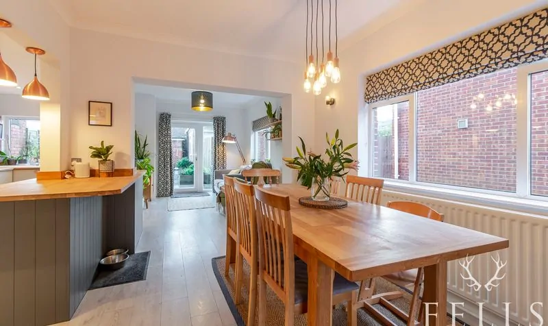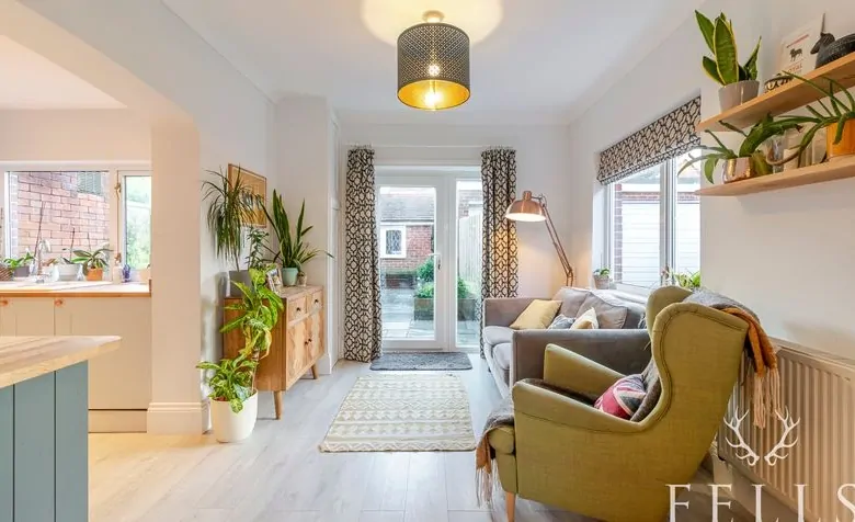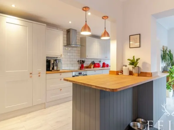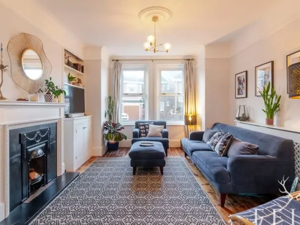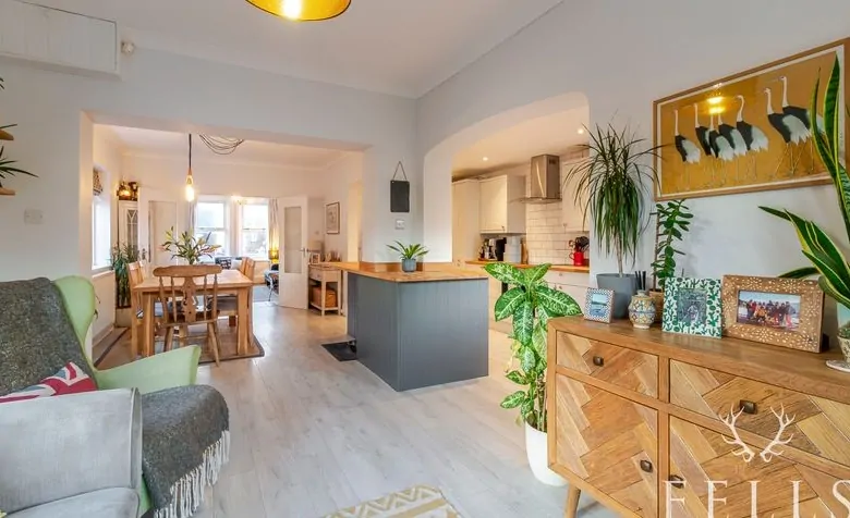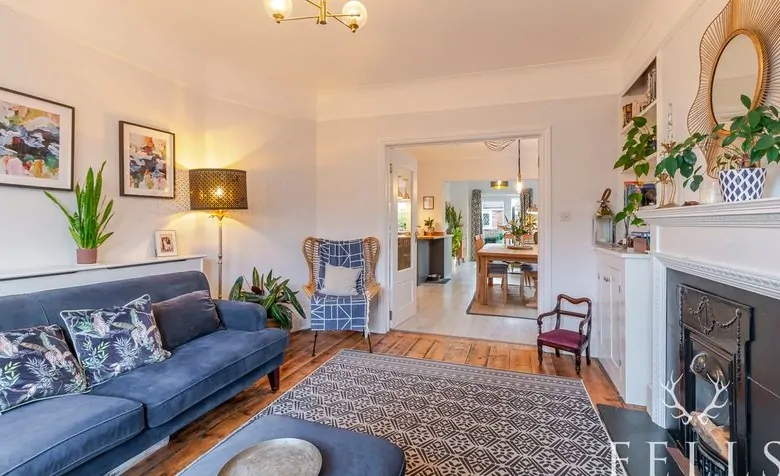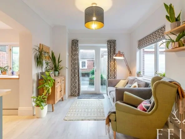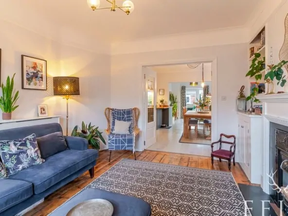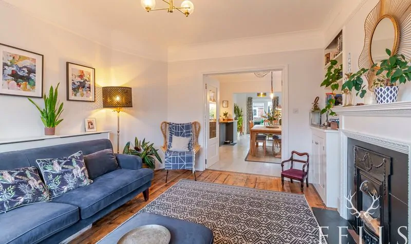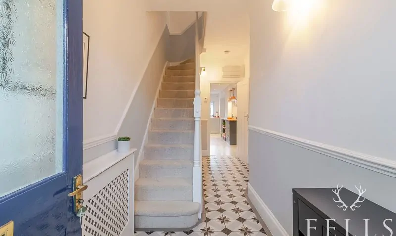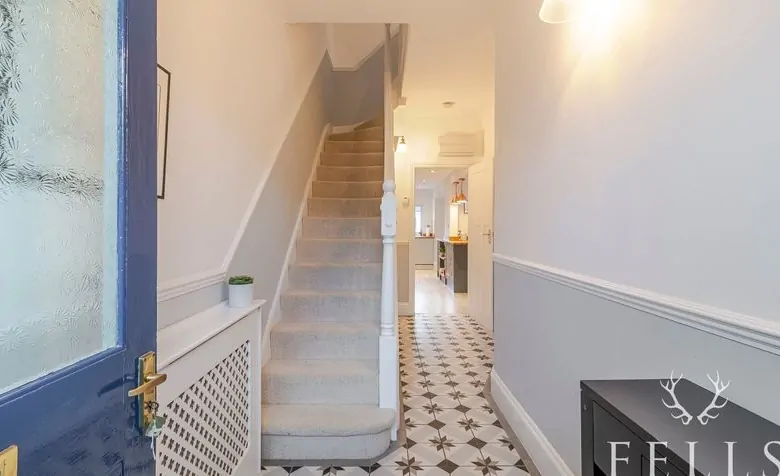 Stepping through the entrance porch, there is an immediate sense that this is a home shaped with care and restored with a discerning eye. The half glazed solid wood door opens into a welcoming hall where patterned tiled flooring, a classic dado rail and under stairs storage hint at the character that runs throughout. The ground floor cloakroom is neatly finished and practical, yet it is the flow beyond that truly sets the tone.