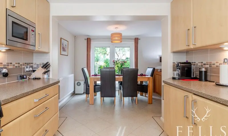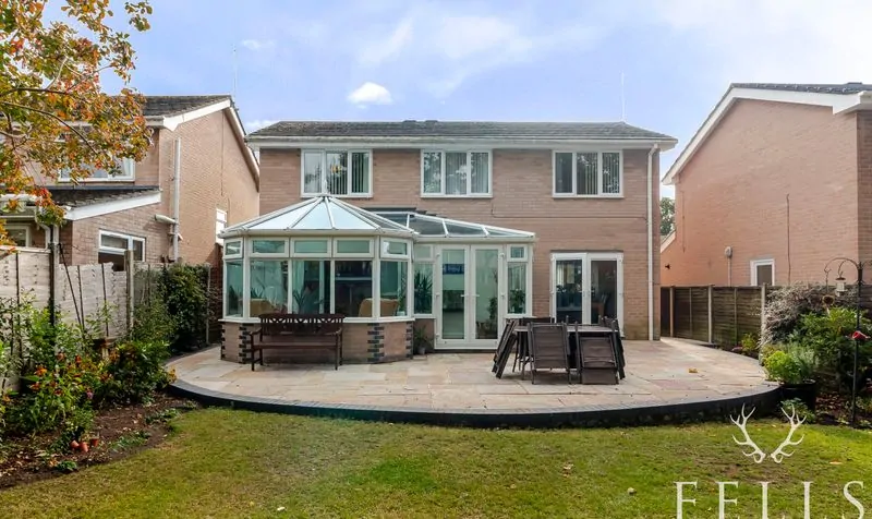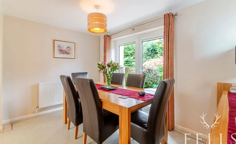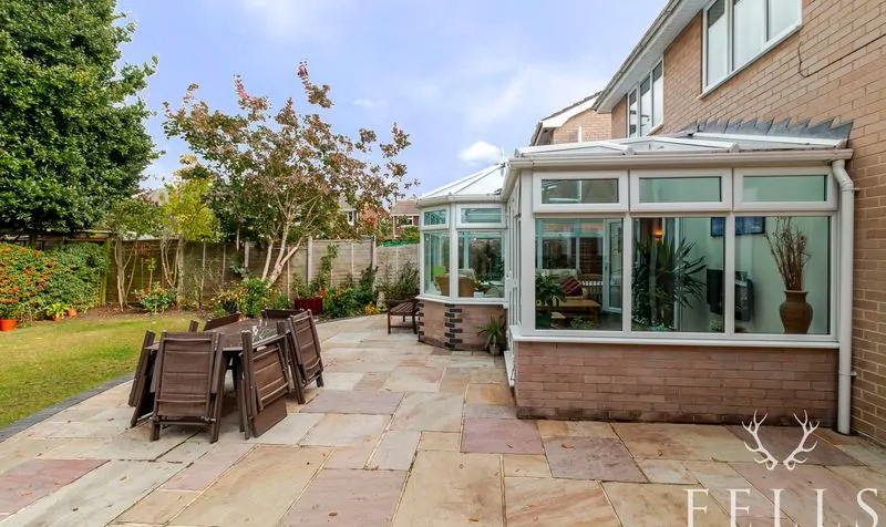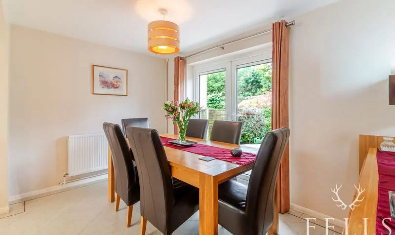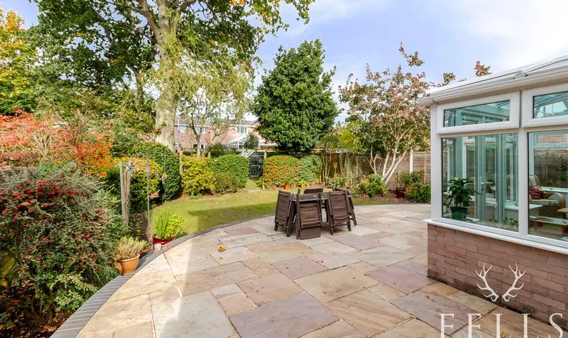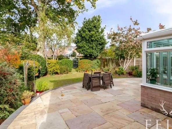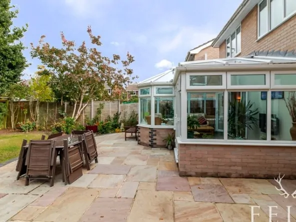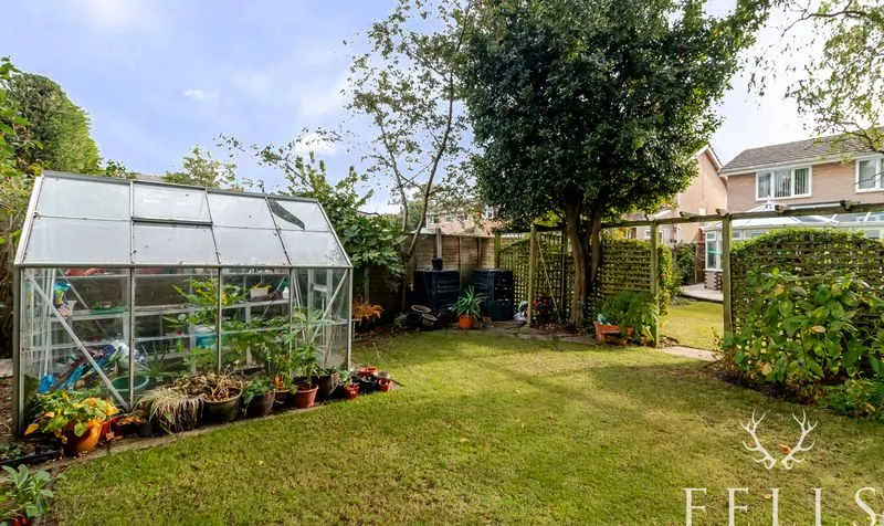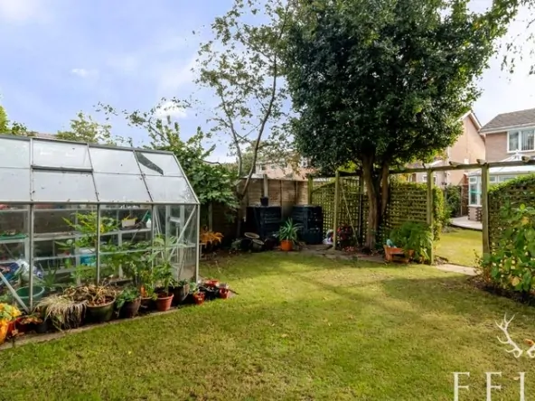 Outside, the property has real kerb appeal. The front garden is neatly kept with lawn and mature borders, along with a driveway that provides off-road parking and leads to the single garage. The rear garden has been beautifully arranged with a large patio, a well-kept lawn, and a further section at the end with a greenhouse and shed. It’s a garden that has clearly been cared for and offers something for everyone, whether it’s space for children to play, a place to grow vegetables, or simply a quiet spot to unwind.