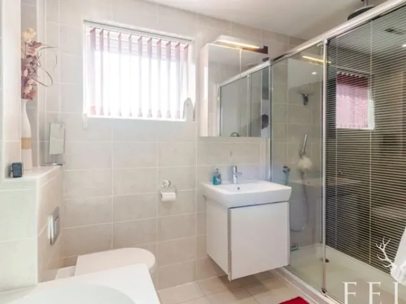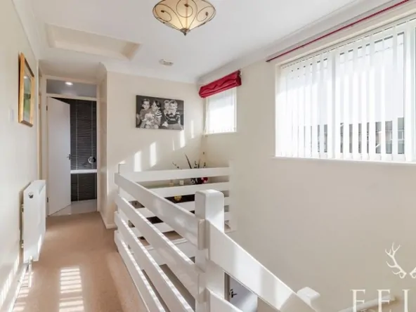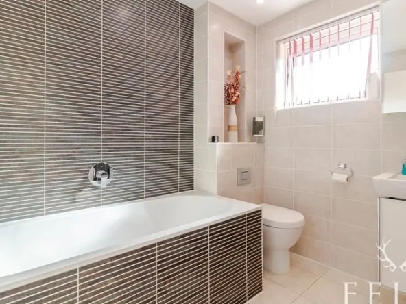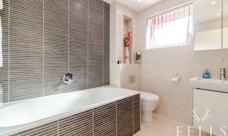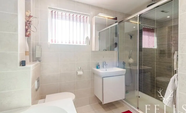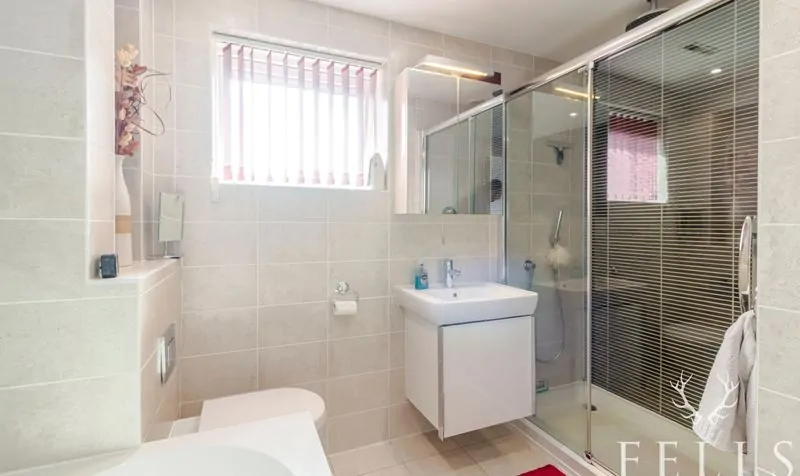 Upstairs, there are four well-balanced bedrooms, each with a comfortable feel and pleasant outlook. The main rooms enjoy views over the rear garden, while the fourth is currently used as a home office, ideal for anyone working from home or needing a quiet study space. The family bathroom has been smartly finished with both a bath and a separate walk-in shower, making it practical for busy mornings as well as a relaxing end to the day.