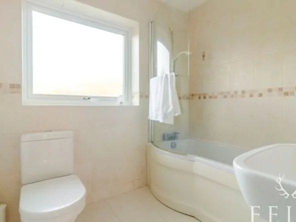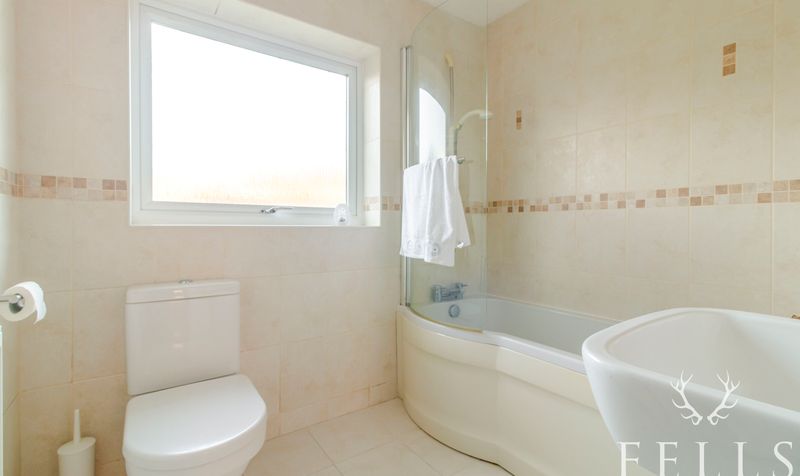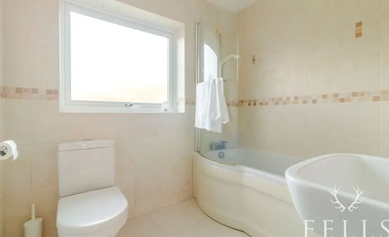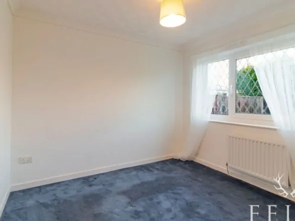 An inner hall leads to all three bedrooms and the bathroom, creating a practical and well balanced layout. The principal bedroom sits to the front with built in mirrored wardrobes, while the second bedroom overlooks the garden and also benefits from fitted storage. The third bedroom, a small double, offers flexibility as a guest room, home office or hobby space. The bathroom is fully tiled and includes a shaped bath with electric shower, with natural light provided by an opaque rear window. Additional storage and access to the loft space can be found from the hall, along with a cupboard housing the recently installed Worcester boiler.